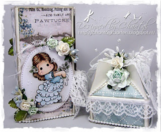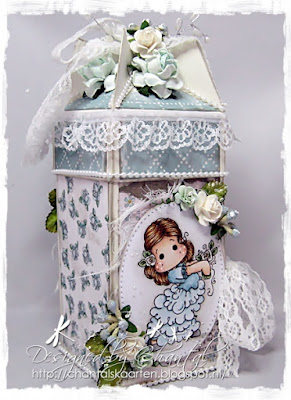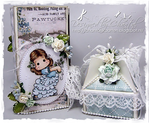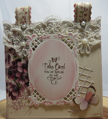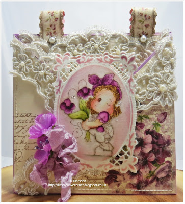 (Nicola made a mini box file and this is the front of it - she added Eva antique white cotton lace, Laila vintage style white cotton lace, hot pink microdot satin ribbon, baby pink cherry blossoms, pink starburst stamens, forget-me-nts, ivory embroidered tulle butterfly, butterfly dangle beads in pinks and lilacs)