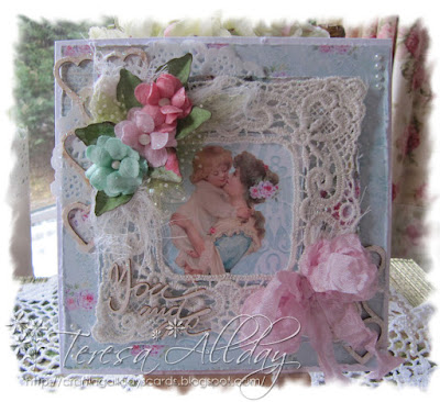 Mary used Pion Design Caroli Linnaei, cream and white spot paper, 10mm ivory flat back flower trim, 7mm pale pink satin . pale pink cosmos daisy, a pink lily flower and a 20mm pale pink rose, 55mm 'Emma' ivory guipure lace topped with 10mm double row flat back pearl trim, 4 ivory lace corners. , http://www.ribbongirl.co.uk/catalog/5metres-sticky-tape-p-502.html