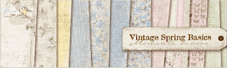 Vintage Spring Basics 6x6 Paper Stack , Lace Flower Applique Trim Antique White , Cheesecloth Fabric 50cm x 80cm, 32mm 'Clementine' Ivory Embroidered Tulle Lace, 15mm 'Rosa Bianca' Guipure Lace, 5metres Cream Seam Binding, Stickles Stardust Ranger Ink