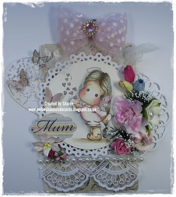 Kim used Pion Cherry Blossom 6x6 PD7104F, 38mm Pale Pink Sugar Sprinkles Sheer Ribbon, 7mm Pale Pink Satin Berisford No 70, 15mm Pale Pink Satin Berisford No 70, Pale Pink Ballerina Blossoms,