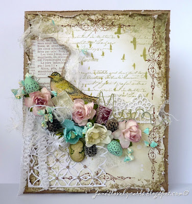 15mm White Church Window Guipure, 3mm White Pearl Bead String, Maja Design Papere Life by the sea, Pion Design Paper Shoreline Treasures, 30mm wild rose blue, 10mm dusky blue open rose,